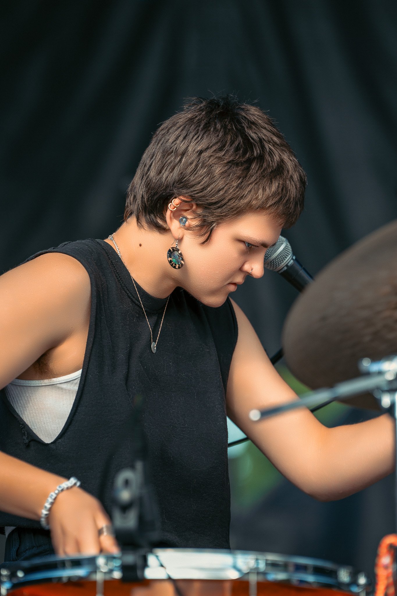 From the moment I parked my car, strapped my camera gear and walked towards the stage the air was already thick thick with anticipation, and smells of Chik-Fil-A – a heady mix of the worst humidity, fried chicken, and the vibe of a young people gathered across Holiday Park for the next date of Rock The Ruins (sponsored the the best Forty5). Rock the Ruins, a testament to the city's industrial past turned open-air concert venue, throbbed with the promise of an unforgettable evening with two bands I actually regret not knowing before going. I knew both bands were set to play Lollapalooza next weekend, but for at least tonight, it was about experiencing the raw, untamed energy both bands in a more relaxed setting.