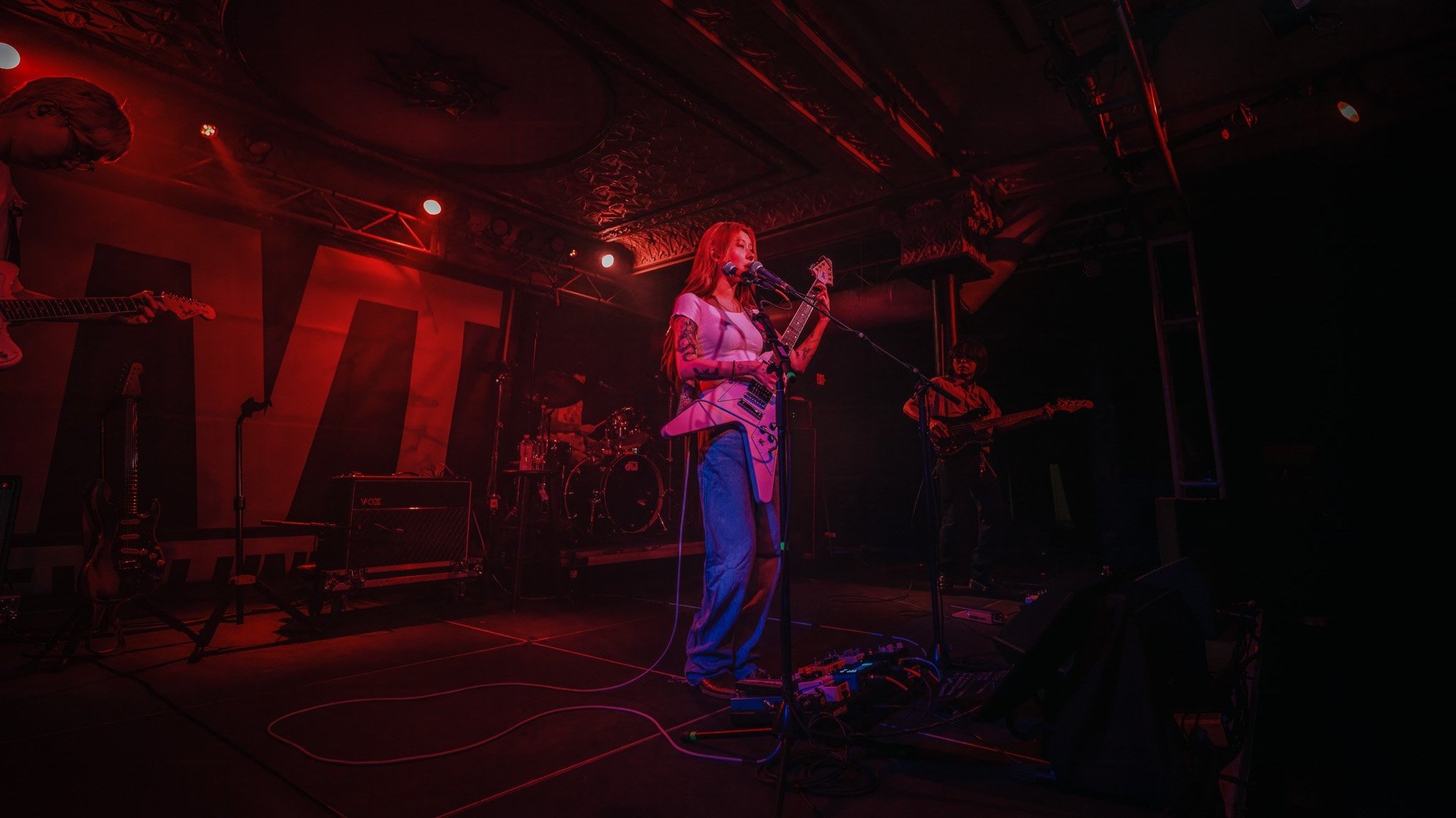 I joked with people on the other side of barricade, “Who is this artist?” I asked, just having read the wikipedia, and Korean news articles all about Baek and her band. As the lights dimmed and the band took the stage, a collective round of applause swept through the entire room of the small basement venue. Baek's stage presence was less energetic than most, but with a voice so raw, it left little room under the spotlight. The band's chemistry and fuzz clean guitar tones was undeniable as their music a fusion of post-grunge and alternative rock resonates deeply with the audience. The band's ability to blend musical genres and create a sound that is uniquely their own is a testament to their artistry. As a photographer, it was a privilege to capture the essence of their performance. Now, a gallery of some of those moments from the show.
